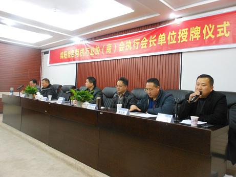 市委農(nóng)辦副主任何春華、市農(nóng)業(yè)局副局長(zhǎng)王均沛為綿陽(yáng)綠色有機(jī)行業(yè)協(xié)會(huì)(商會(huì))執(zhí)行會(huì)長(zhǎng)單位——科技城科源科技有限公司授牌。市工商聯(lián)秘書長(zhǎng)王華明、綿陽(yáng)綠色有機(jī)行業(yè)協(xié)會(huì)(商會(huì))發(fā)起人、名譽(yù)會(huì)長(zhǎng)蔣開恩、綿陽(yáng)綠色有機(jī)行業(yè)協(xié)會(huì)(商會(huì))會(huì)長(zhǎng)、四川鐵騎力士集團(tuán)董事長(zhǎng)雷文勇,科源科技董事長(zhǎng)、綿陽(yáng)綠色有機(jī)行業(yè)協(xié)會(huì)(商會(huì))執(zhí)行會(huì)長(zhǎng)廖藝徽,綿陽(yáng)綠色有機(jī)行業(yè)協(xié)會(huì)(商會(huì))會(huì)員企業(yè)代表參加了會(huì)議。