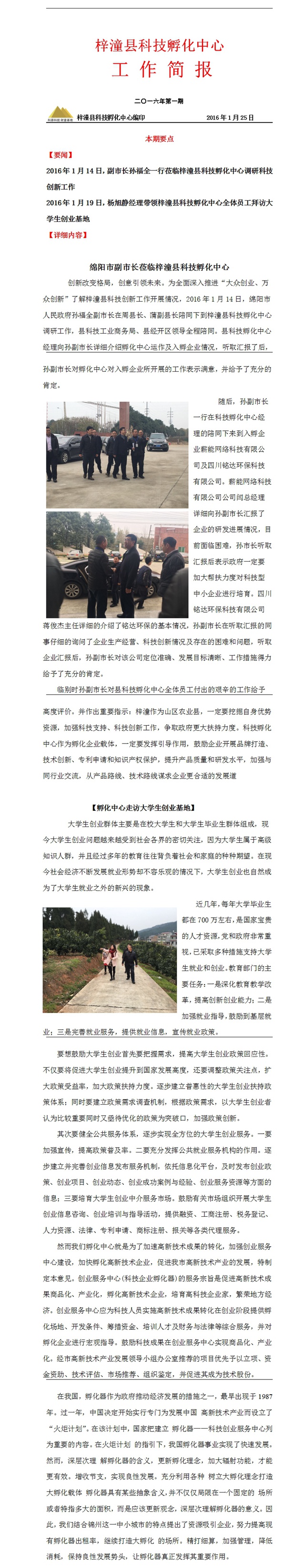 梓潼縣科技孵化中心二零一六年一月工作簡(jiǎn)報(bào)