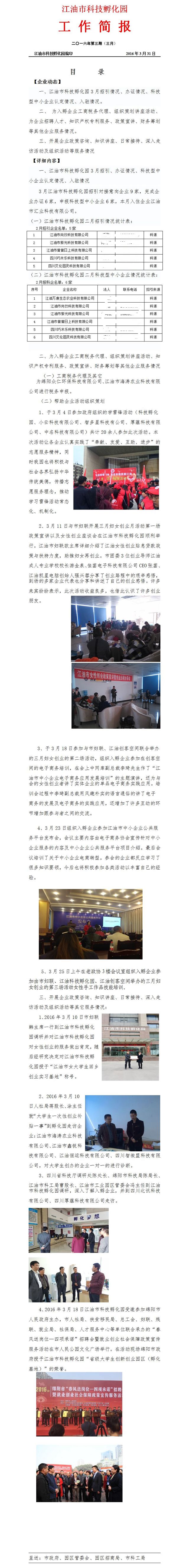 江油市科技孵化園2016年3月工作簡(jiǎn)報(bào)