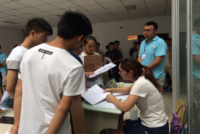 多名機電技術(shù)應(yīng)用專業(yè)的畢業(yè)生咨詢孵化園入孵企業(yè)提供的焊工、鉗工崗位,與孵化園工作人員交談了解工作地點、待遇及工作性質(zhì)后,投了個人簡歷,并填寫應(yīng)聘人員登記表。